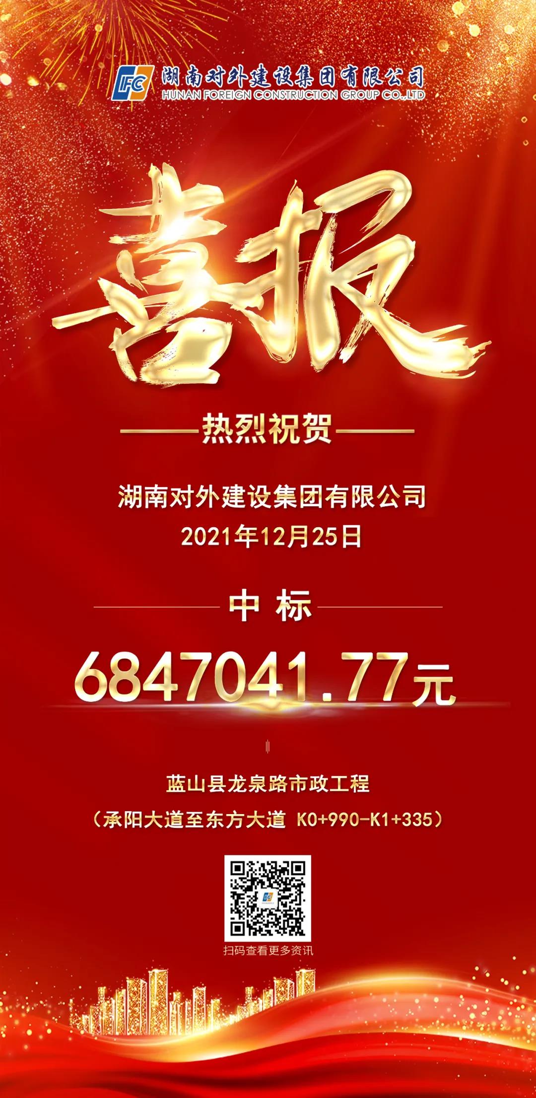 2021年12月25日,我司收到湖南藍山經(jīng)濟開發(fā)區(qū)管理委員會發(fā)來的中標通知書,中標藍山縣龍泉路市政工程項目。據(jù)悉,該項目位于湖南省永州市,主要工程內容包括道路工程、交通工程、管線工程、照明工程等。
