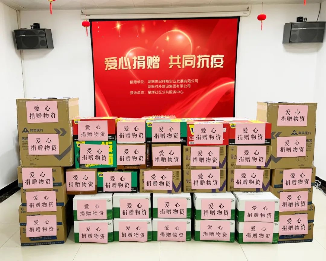 一箱箱的物資,彰顯著湖南外建的企業(yè)擔(dān)當(dāng)和責(zé)任