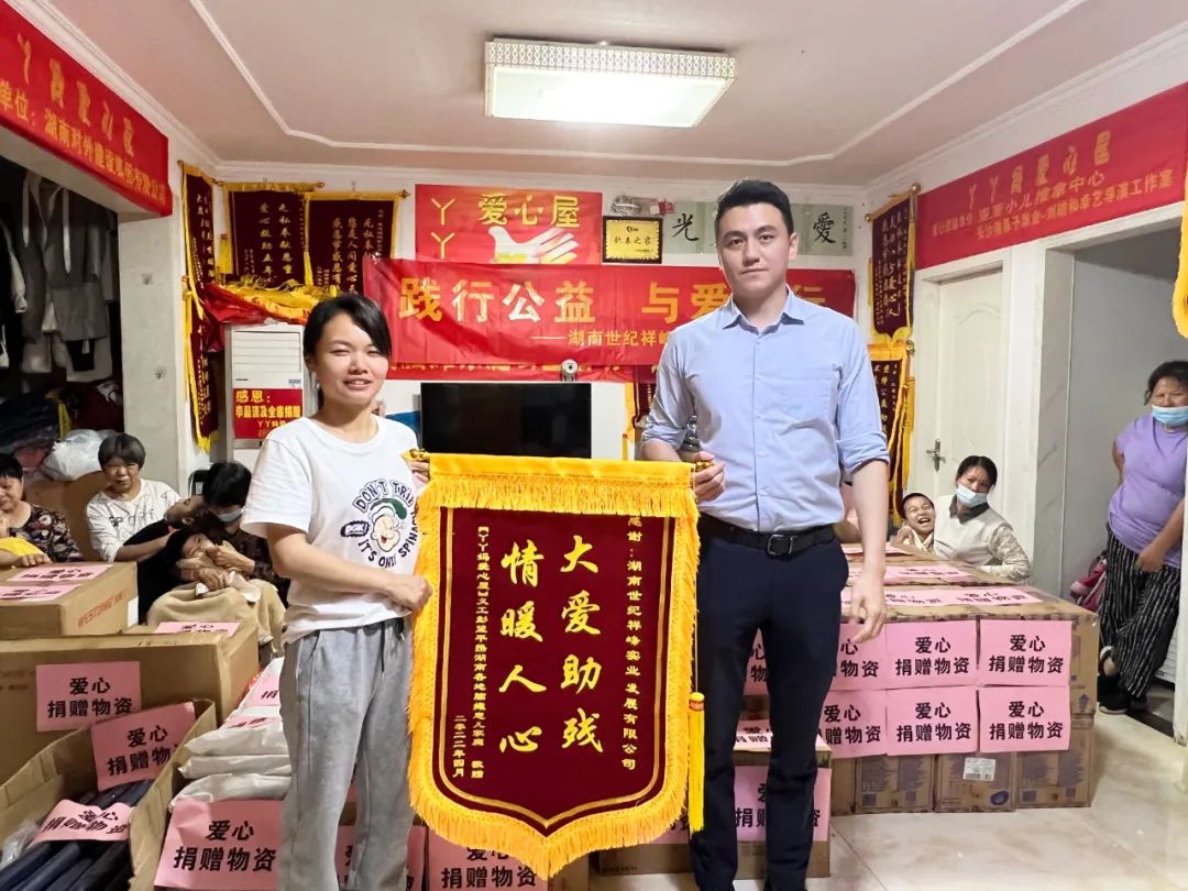 YY媽愛心屋代表對湖南外建的捐贈表示感謝,并表示這些愛心物資,不僅在物質(zhì)上對孩子們是一種幫助,在精神上也是一種提升。孩子們能感受到來自社會的關(guān)愛,這將鼓勵他們更好地參加康復(fù)訓(xùn)練,不斷進(jìn)步?!奥焓埂迸c湖南外建結(jié)緣兩年以來,每當(dāng)這里的孩子急需物資和資金時,湖南外建都會第一時間送過來,感激這么具有愛心和社會責(zé)任感的企業(yè),并在現(xiàn)場贈送了錦旗。