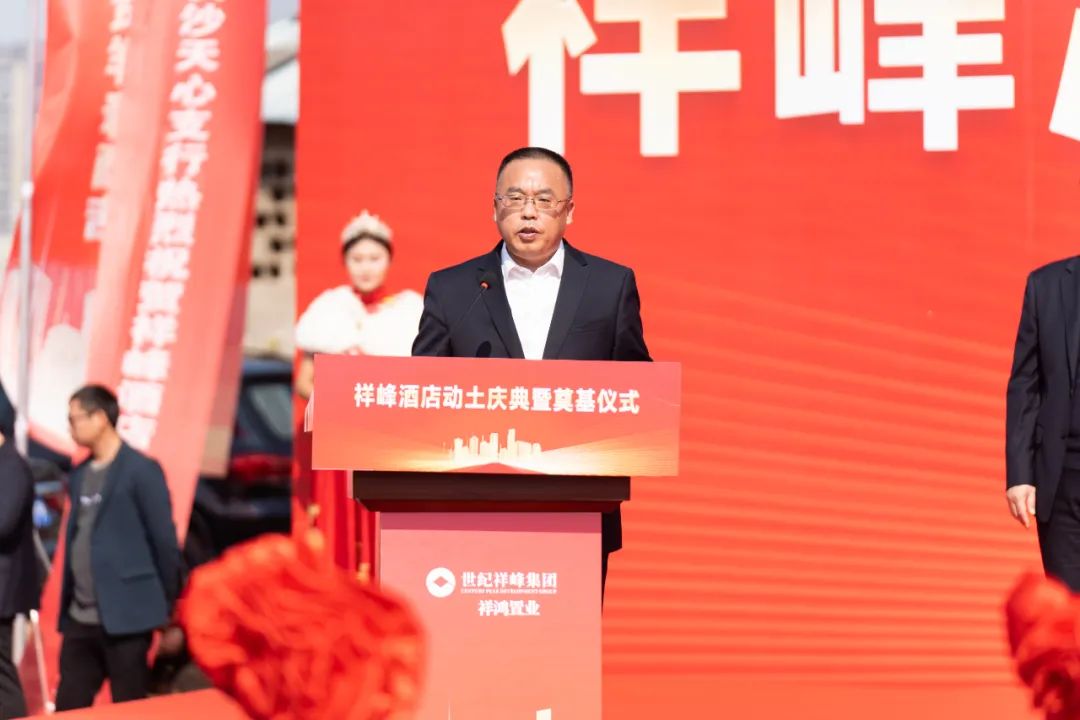 儀式開始,集團董事長許剛丈發(fā)表了熱情洋溢的講話。他表示,在市、區(qū)兩級政府的大力支持下,本著回饋家鄉(xiāng)的初衷,集團將全力以赴推進祥峰酒店暫用名建設(shè)工作,打造湘南地區(qū)酒店標(biāo)桿,引領(lǐng)衡陽酒店行業(yè)二十年。